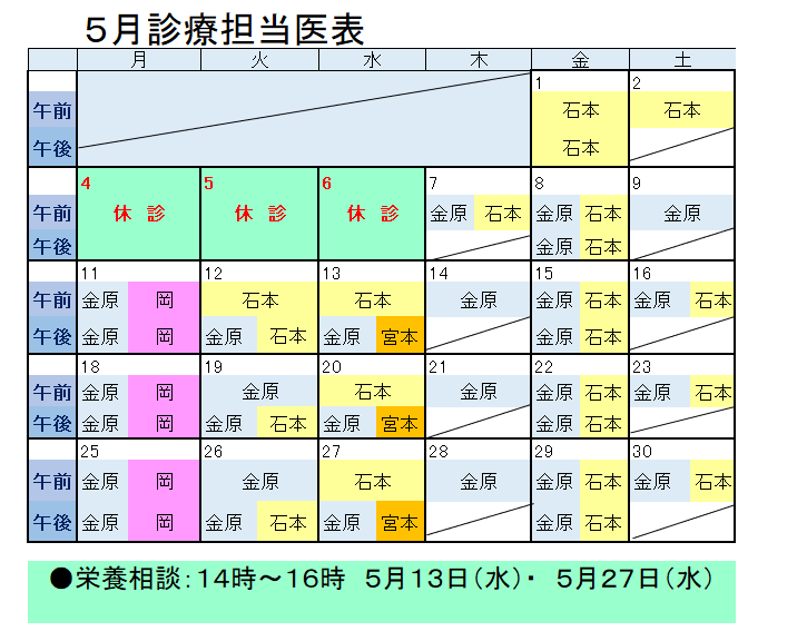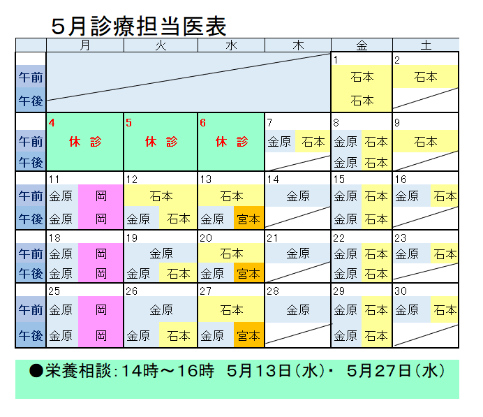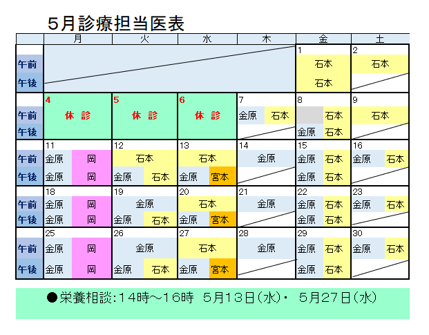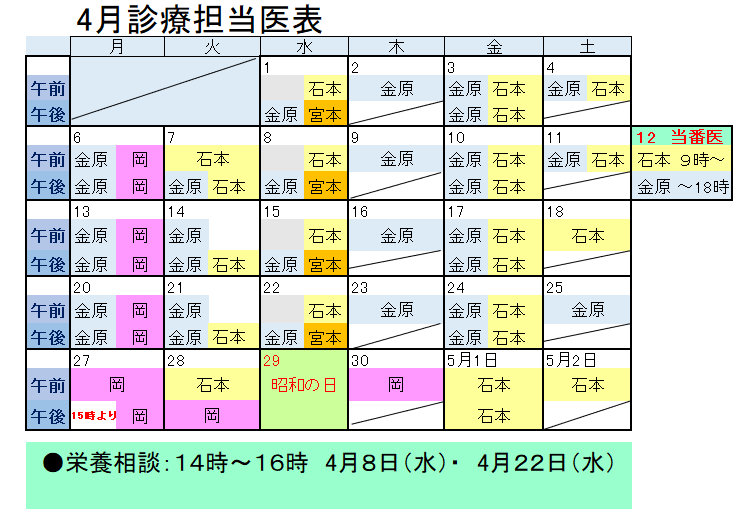 ■栄養相談(月2回)は当日受付へ変わります。栄養相談実施日は「担当医表の下段」を確認してください。